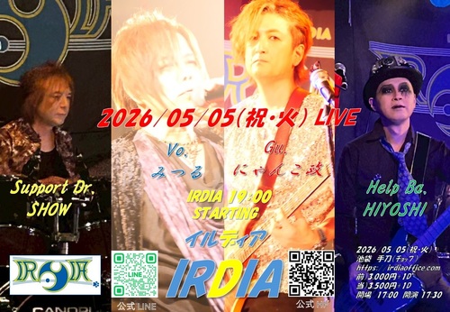 26.05.05(祝・火) IRDIA(イルディア)池袋手刀(チョップ)LIVE!